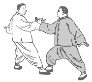 Existe una serie de ejercicios a los que se suele considerar "el aspecto marcial del Tai Chi Chuan", nos referimos al "empuje de manos" (tui shou). Estos ejercicios consisten básicamente en una serie de empujones y tirones entre dos practicantes, que buscan mantener una coordinación completa con el compañero, de forma que cuando uno empuja, el otro tira, cuando uno avanza el otro retrocede, etc. La función de estos ejercicios es aprender a fluir con el compañero, a interpretar la intención de sus acciones y a neutralizarlas. En esta serie de ejercicios, por lo general, prima la suavidad sobre la dureza. El objetivo no es tanto el "vencer a un adversario" como el fluir con un compañero, intentando ocupar las posiciones de ventaja, descubrir la debilidad en la técnica del compañero y evitando resaltar las propias.